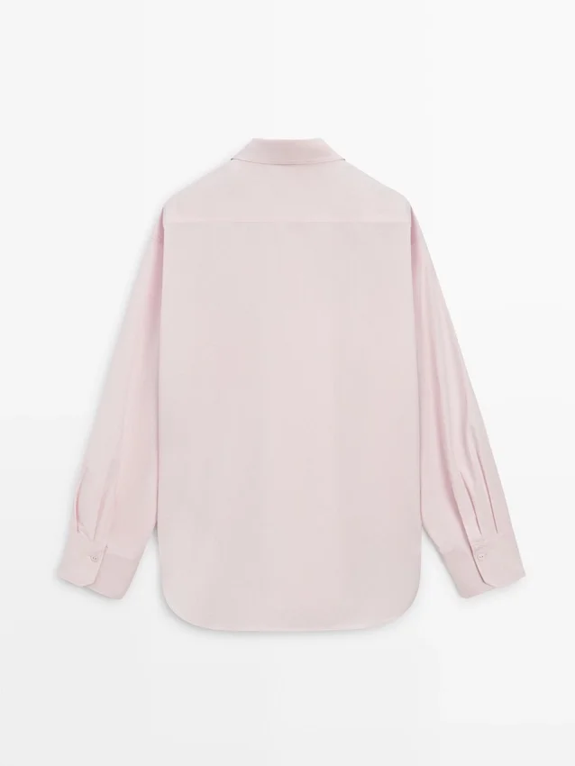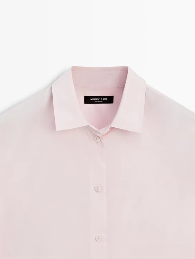 Shirt Made of a Cotton Blend Fabric. Long Sleeves with Buttoned Cuffs. Shirt Collar. Button-Up Front. Poplin Fabric.