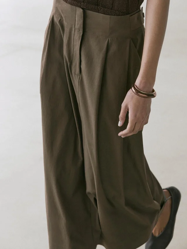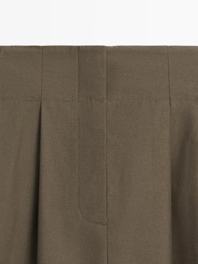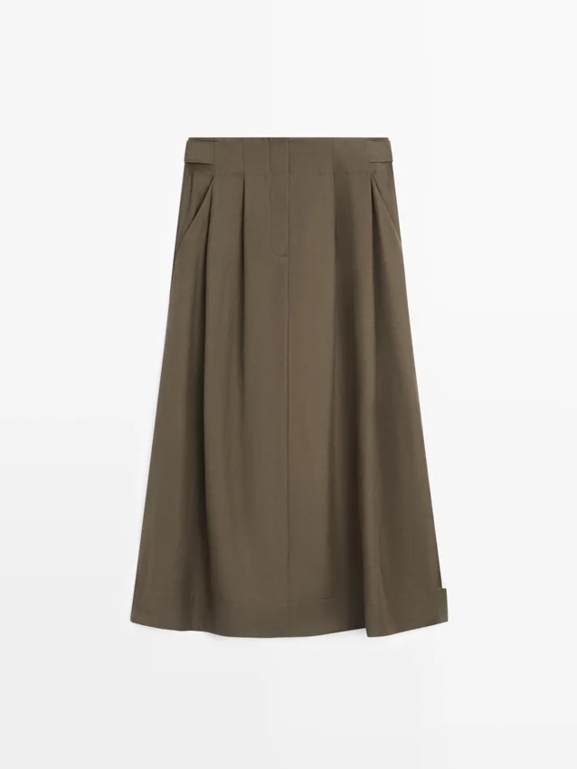 Cotton Blend Midi Skirt. Sash Detail at the Waist. Zip Fastening Concealed by a Placket, with Hook-And-Eye Clasp and Button.