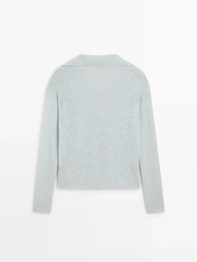 Knit Sweater Made of an Alpaca Blend. Johnny Collar. Long Sleeves. Drop-Shoulder Detail.