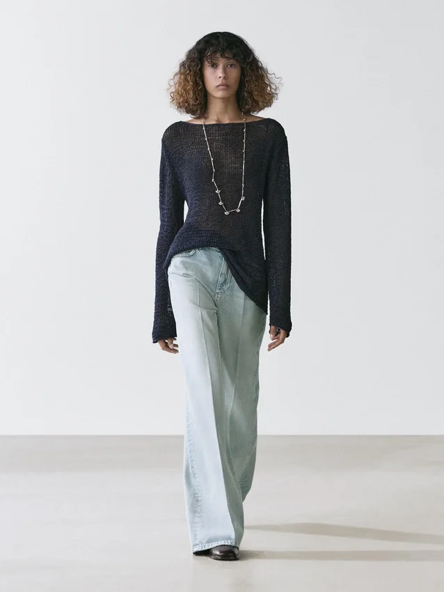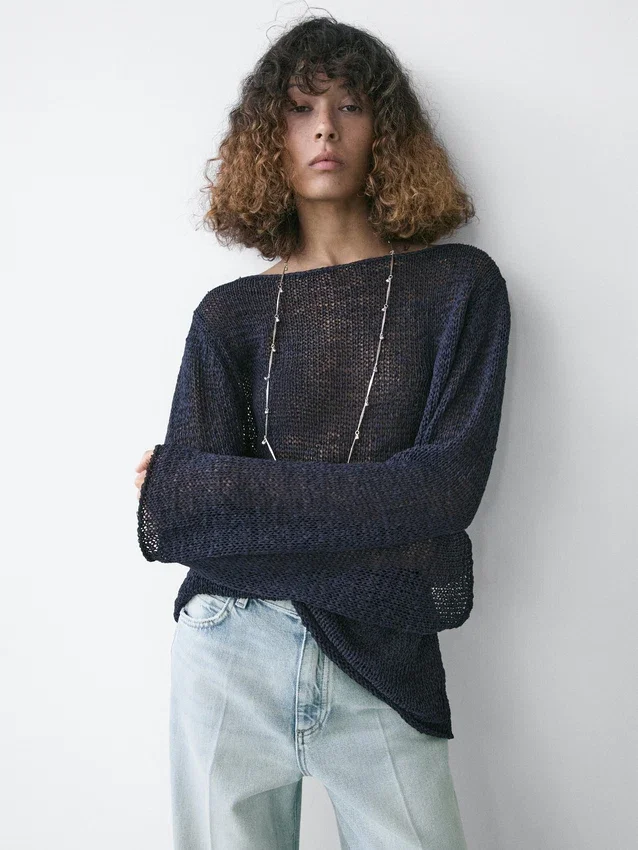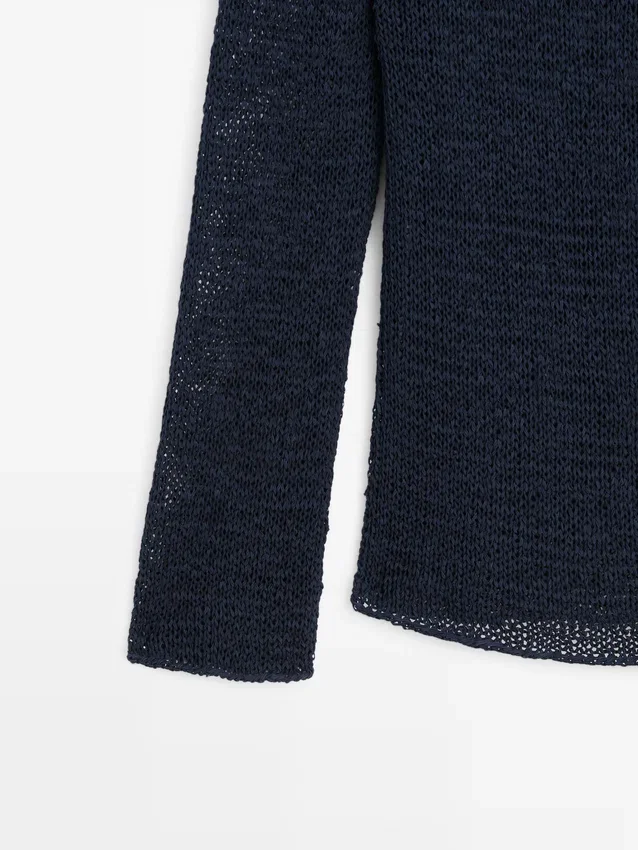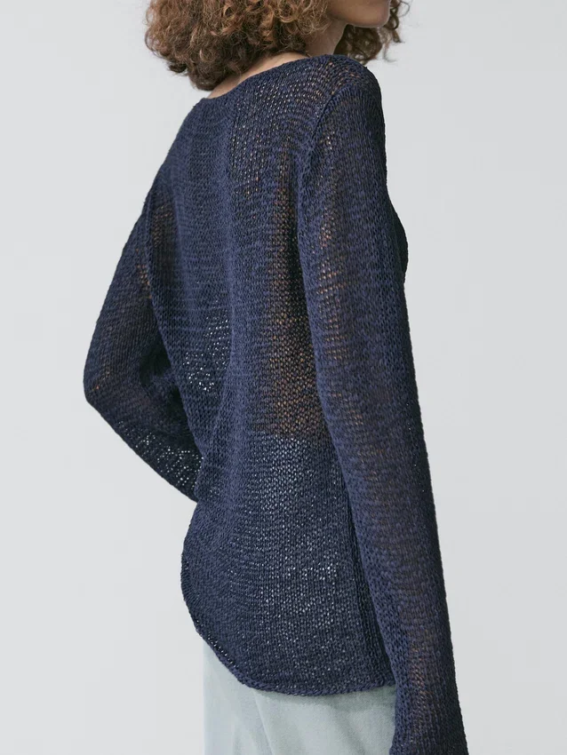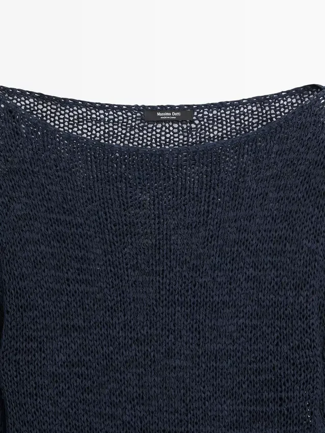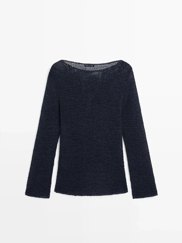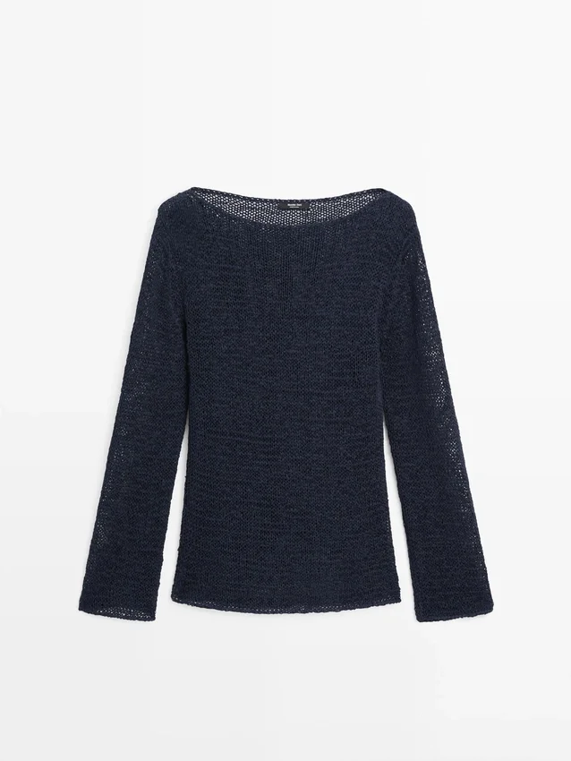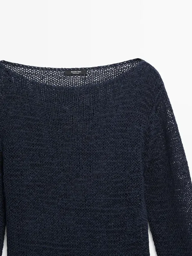 Cotton Blend Knit Sweater. Boat Neck. Long Sleeves.