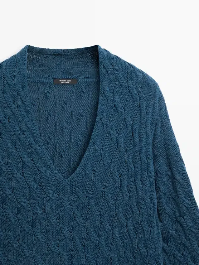 V-Neck . Long Sleeves. Ribbed Trims . Braided Detail.