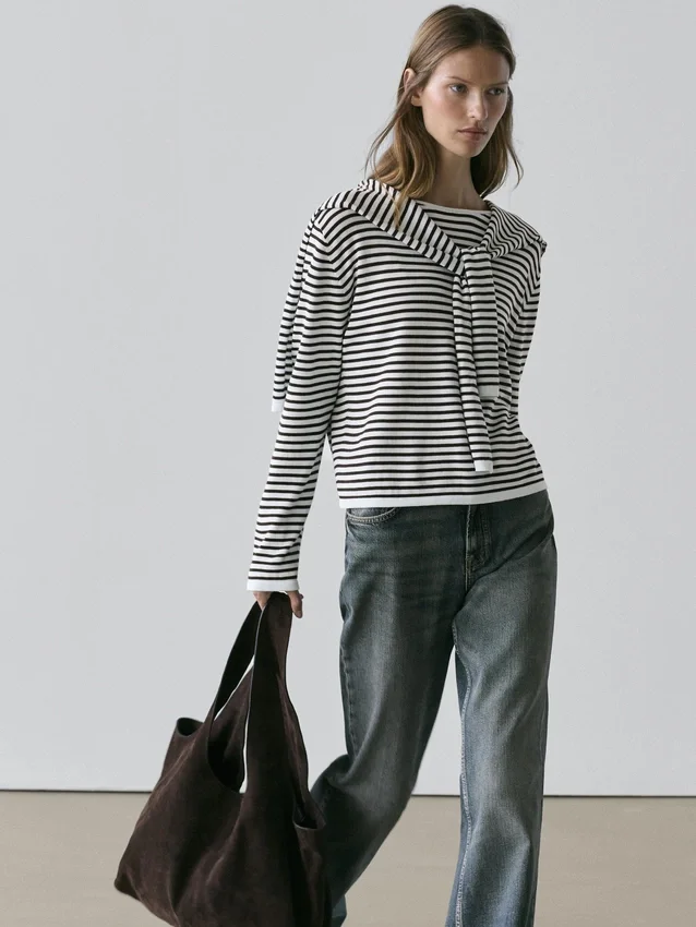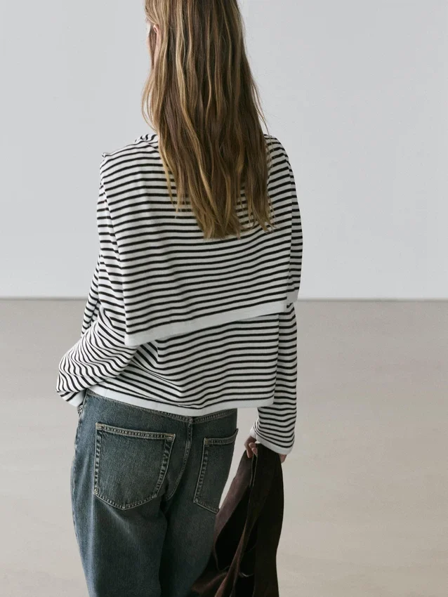 Be the first to review “Striped Knit Sweater with Sleeve Detail”