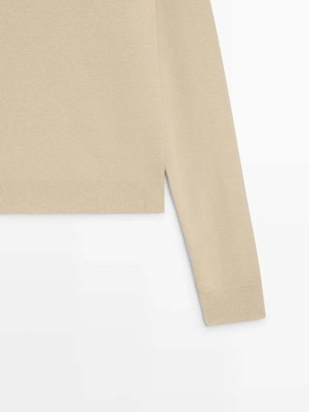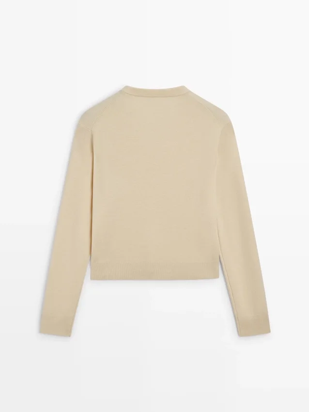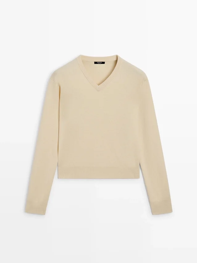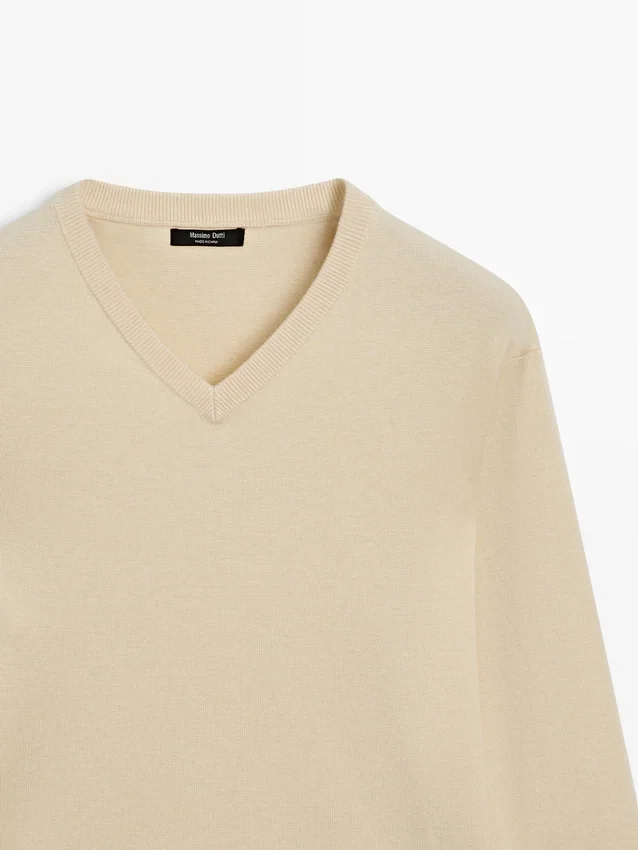 Wool Blend Knit Sweater. V-Neck. Long Sleeves. Ribbed Trims .