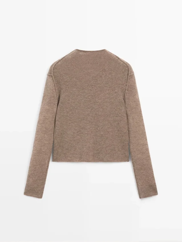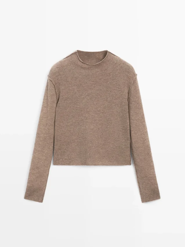 Knit Sweater Made of a Wool Blend Fabric . Mock Turtleneck. Long Sleeves. Seam Details .
