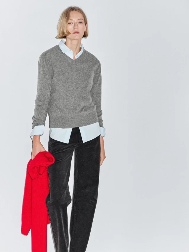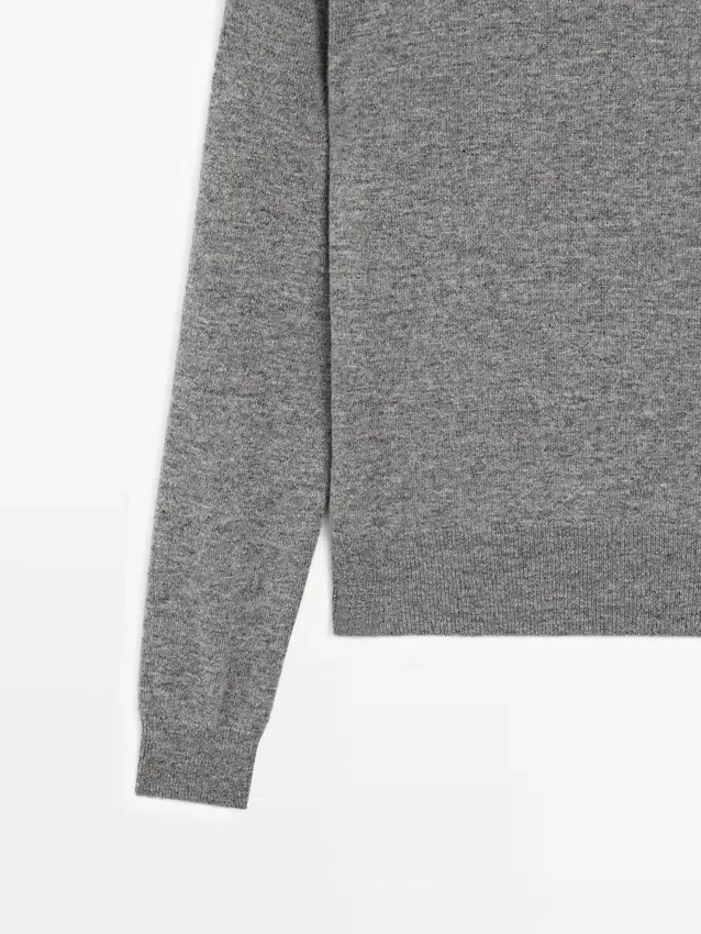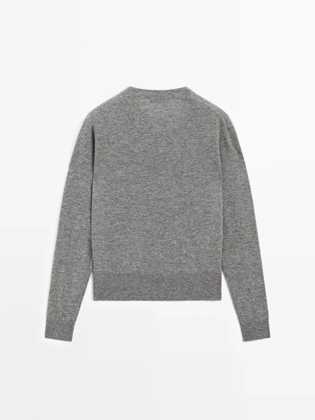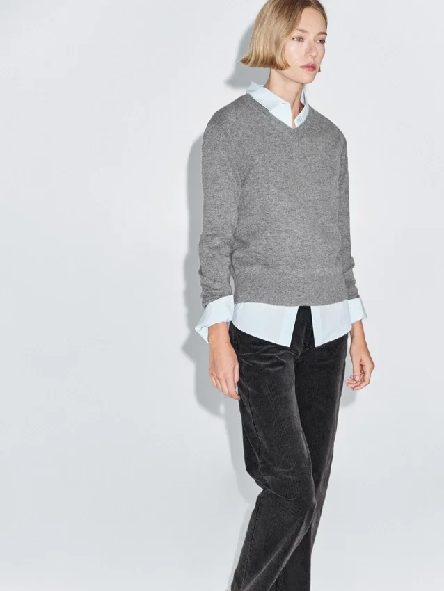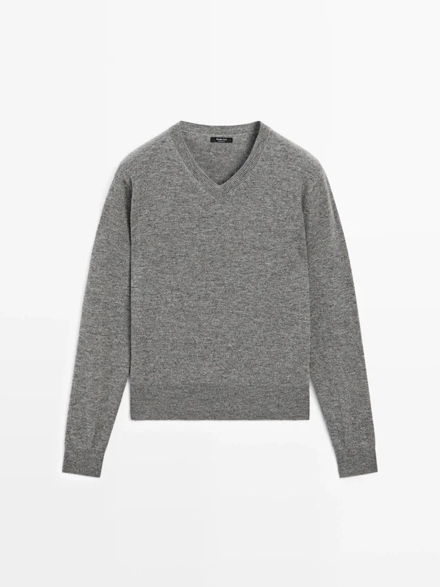 Knit Sweater Made of a Wool Blend Fabric . V-Neck. Long Sleeves. Ribbed Trims .