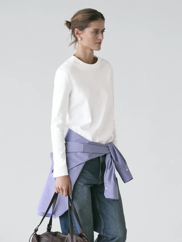 T-Shirt Made from 100% Cotton Fabric with a Compact and Flexible Weave. Slightly Fitted Silhouette, Providing a More Defined and Slim Appearance. Crew Neck. Long Sleeves. Made in Portugal. Crew Neck. Rib Detail on the Collar.