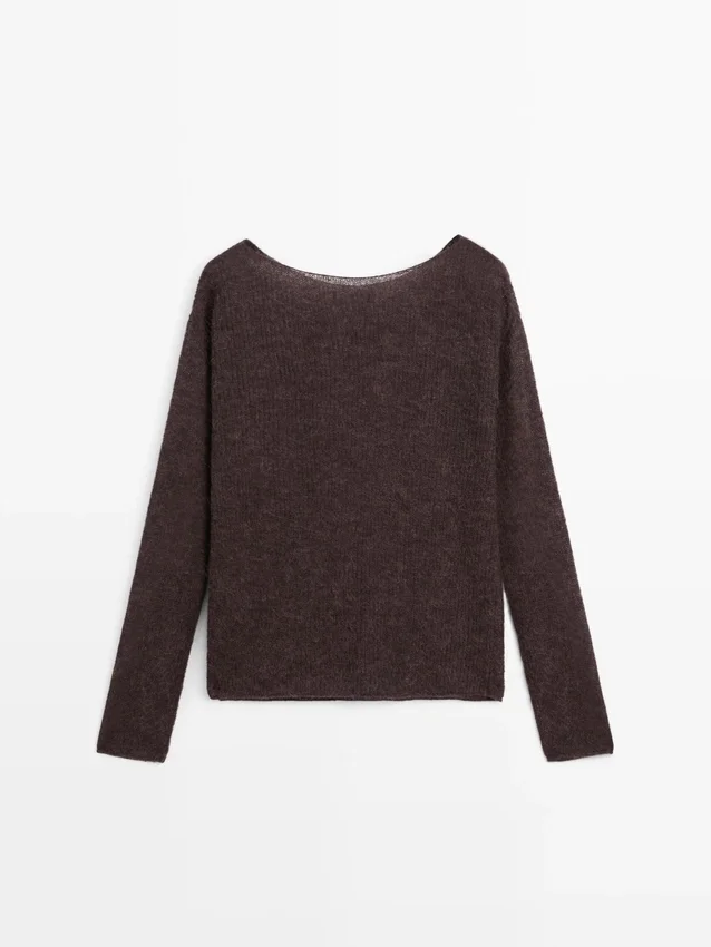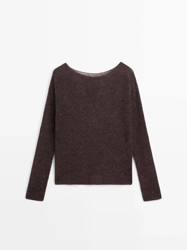 Knit Sweater Made of Wool and Alpaca Blend Fabric. Long Sleeves. Boat Neck .