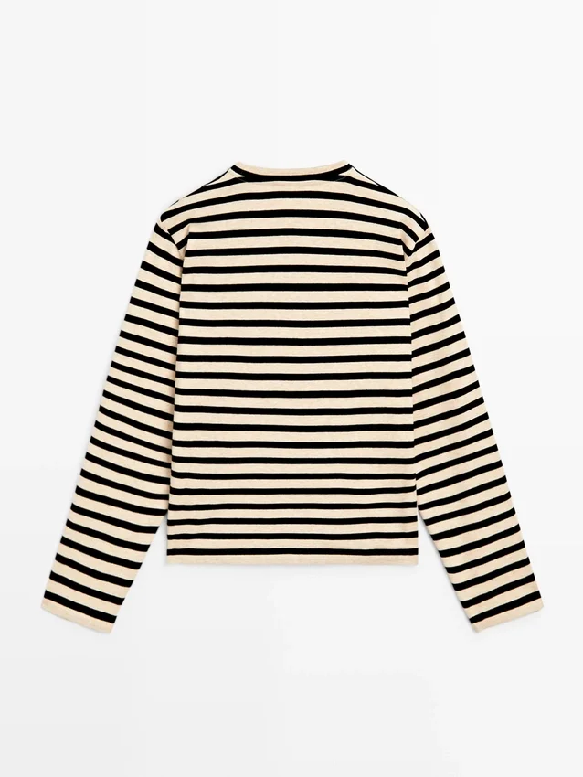 Cotton Blend T-Shirt. Crew Neck. Long Sleeves. Oversize.