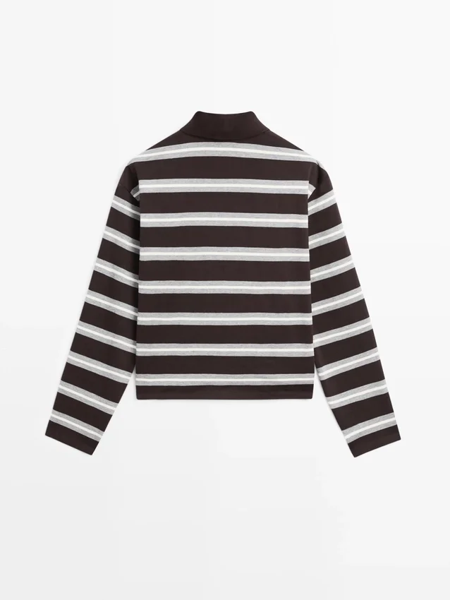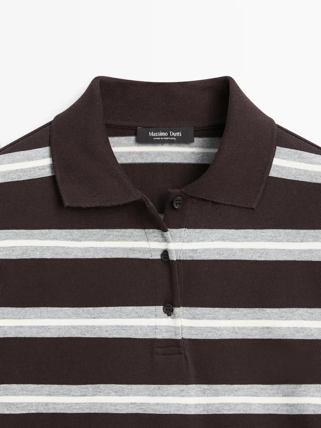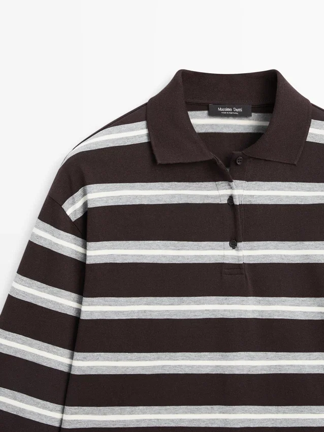 Polo Shirt Made of 100% Cotton. Long Sleeves. Polo Collar with Button Fastening. Striped Print.