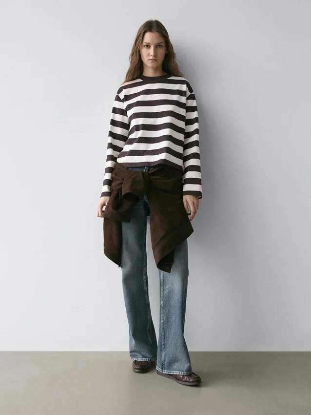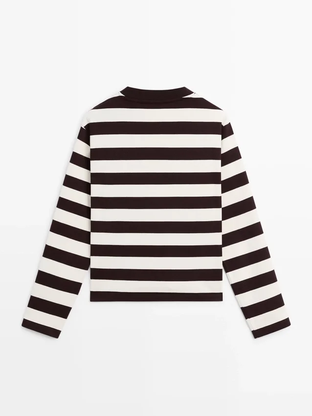 T-Shirt Made of Cotton. Crew Neck. Long Sleeves. Striped Detail.