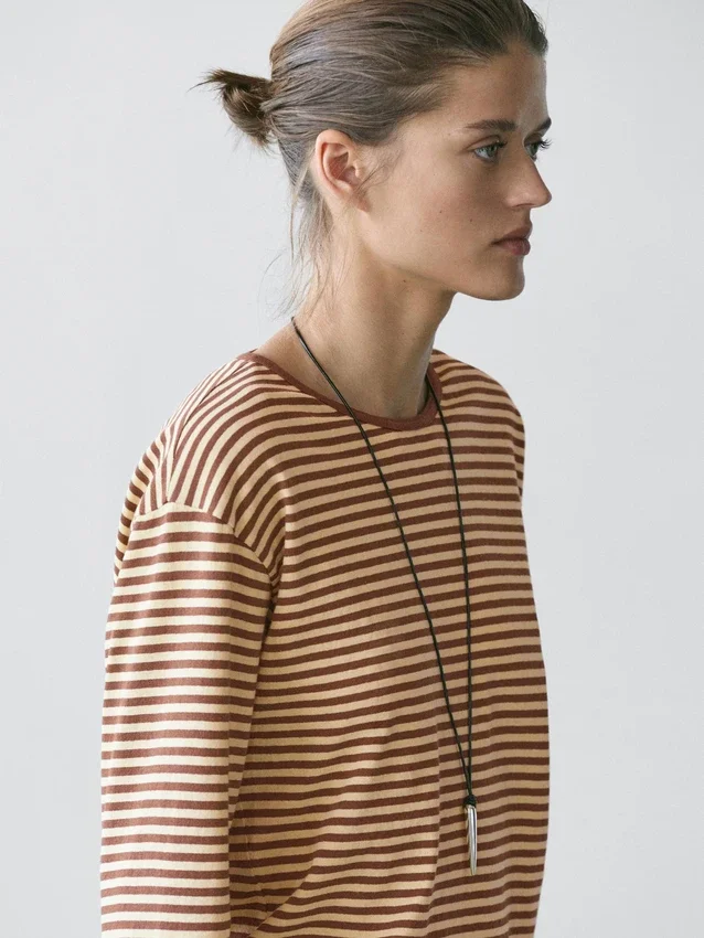 Long Sleeve T-Shirt. Crew Neck. Striped Print.