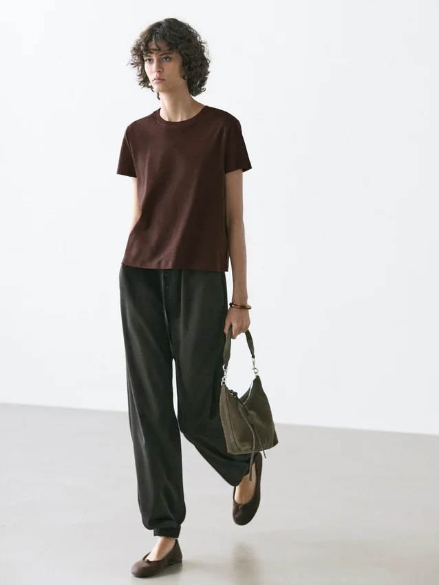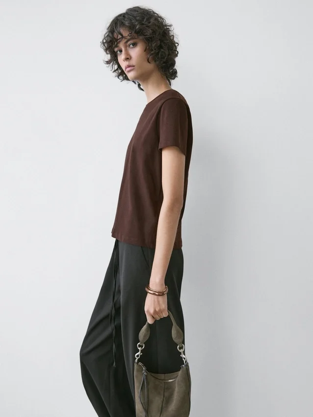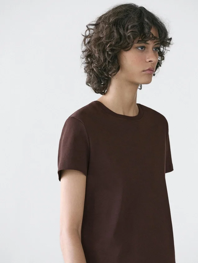 T-Shirt Made from 100% Cotton Fabric with a Compact and Flexible Weave. Slightly Fitted Silhouette, Providing a More Defined and Slim Appearance. Crew Neck. Short Sleeves. Central Seam Detail at the Back. This Garment is Shorter than Usual..