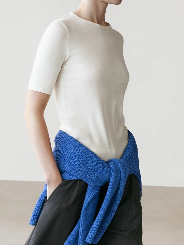 Cotton Blend T-Shirt. Crew Neck. Elbow-Length Sleeves.
