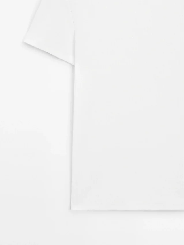 Cotton Blend T-Shirt. Slightly Fitted Silhouette, Providing a More Defined and Slim Appearance. Crew Neck. Short Sleeves. Ribbed Trims . Made from a Slight Stretch Fabric.