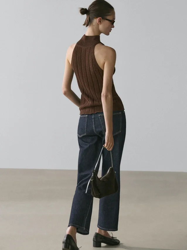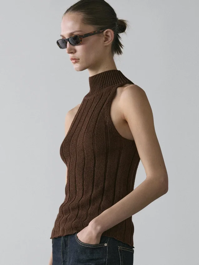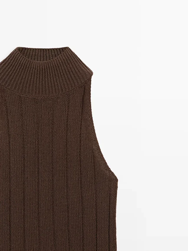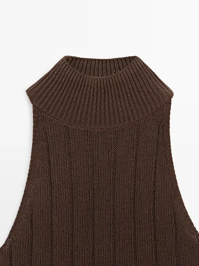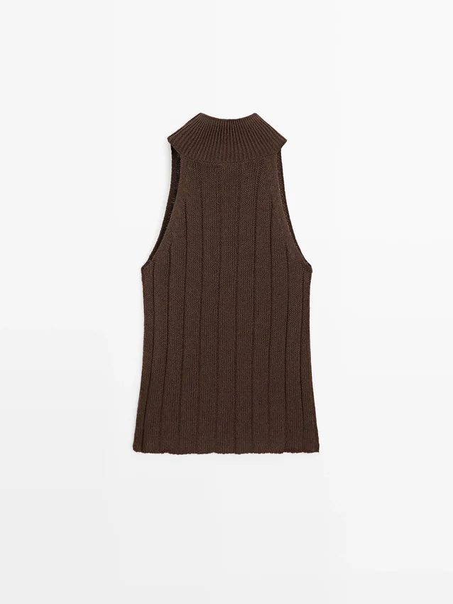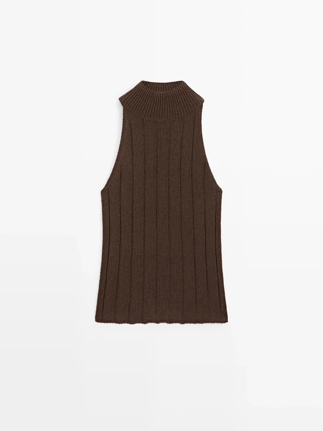 Halter Neck Top. High Neck. Sleeveless. Ribbed Fabric .