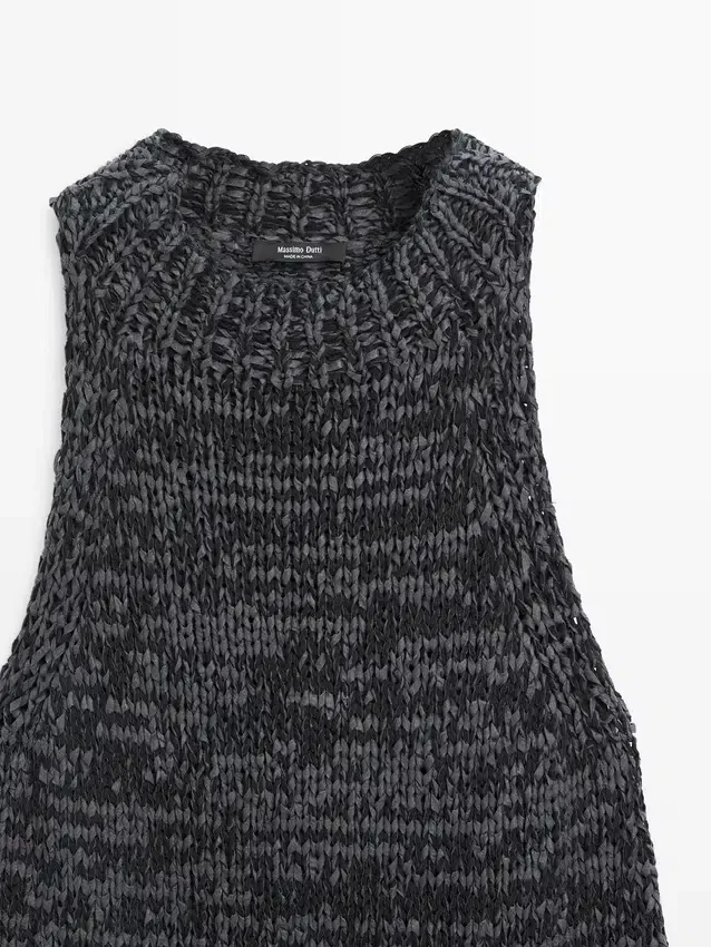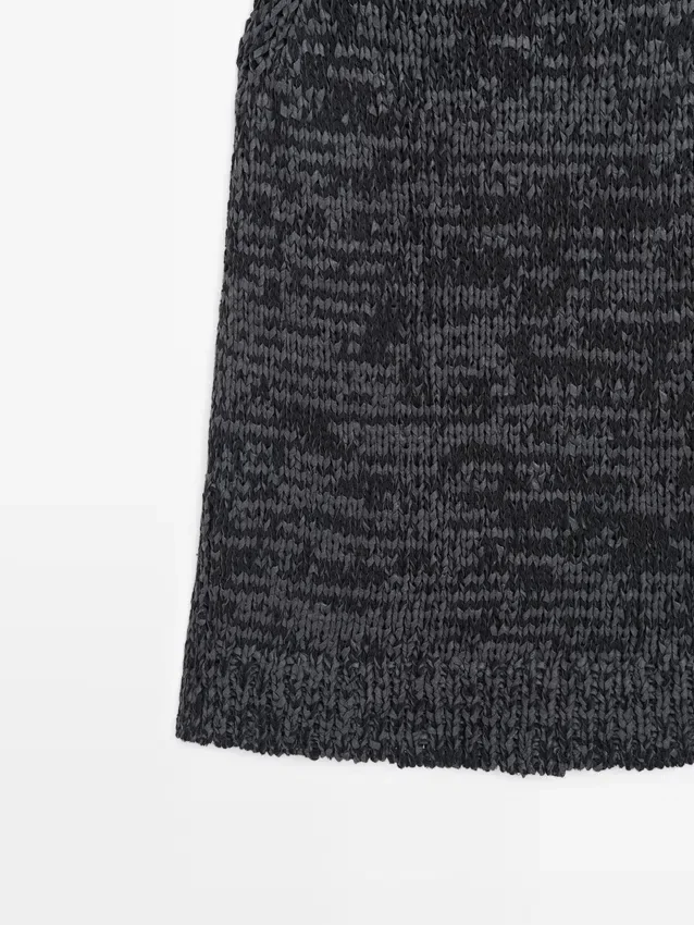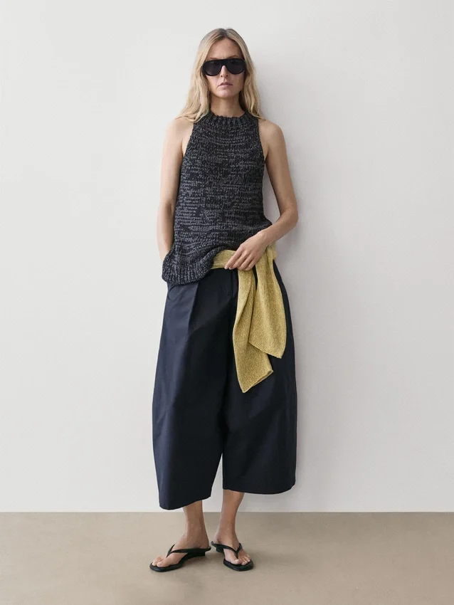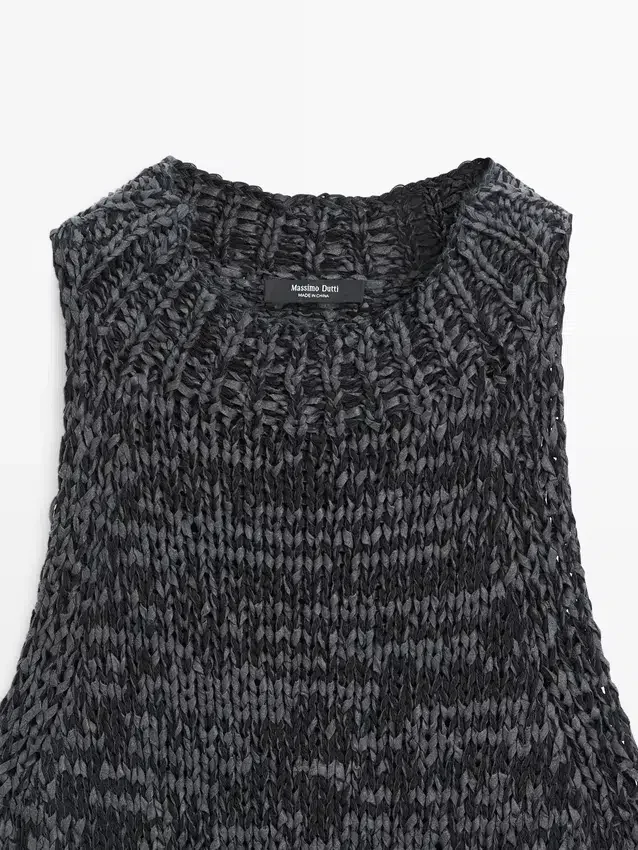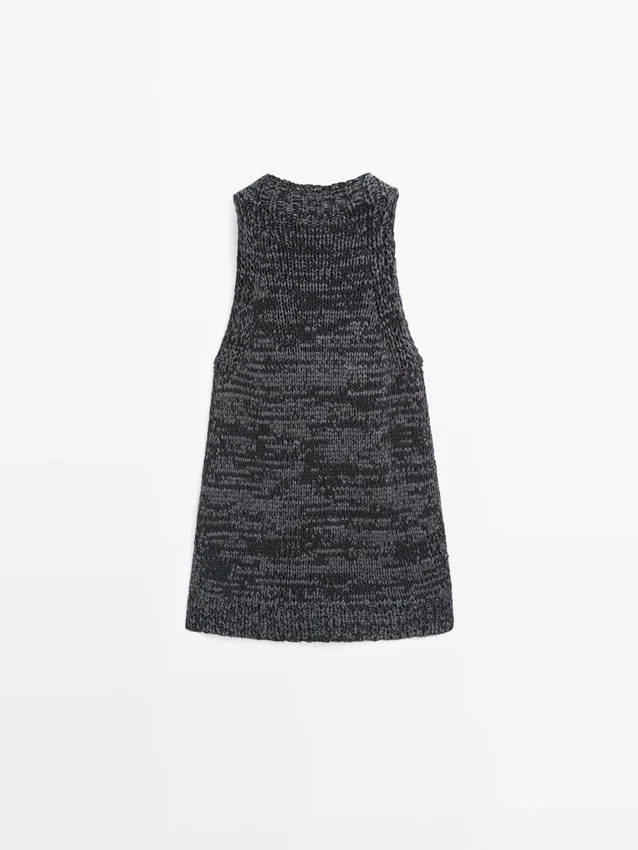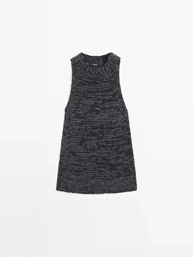 Top Made of Cotton Blend Fabric . Halter Neck. Sleeveless. Side Splits . Flecked-Effect Finish.