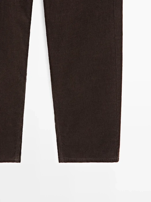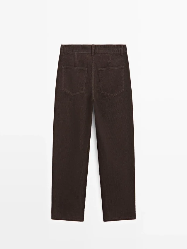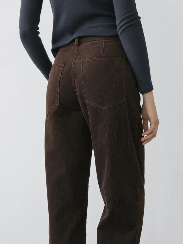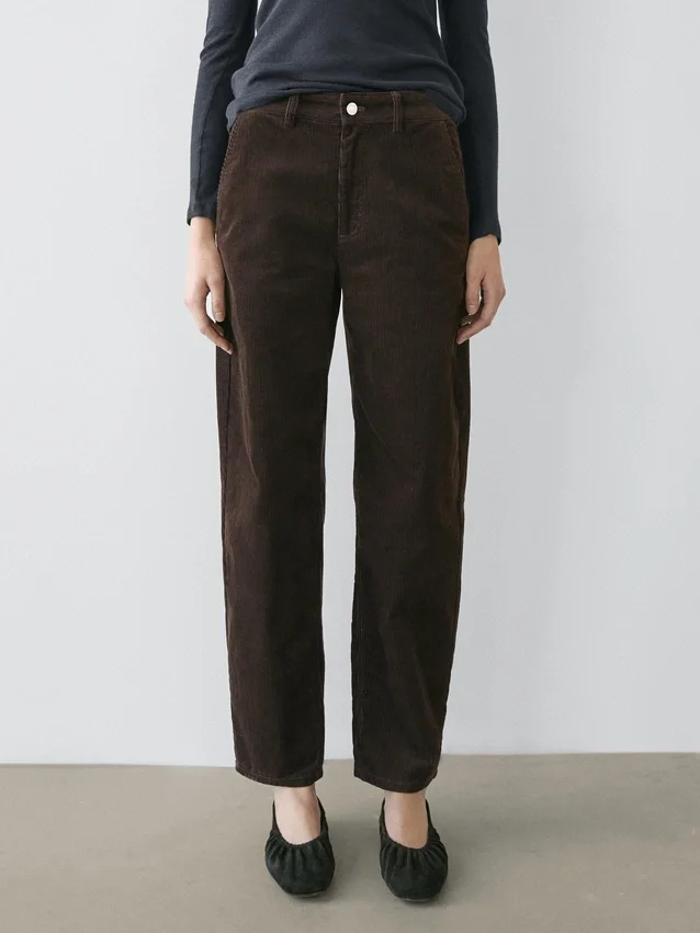 Barrel Fit Pants: This Fit Features a Wider Shape at the Thighs and a Narrower Leg Towards the Ankle, an Intermediate Fit Between Slim and Regular.. Front Zip and Top Button Fastening. Two Patch Pockets at the Back. Two Side Pockets. Corduroy-Effect Fabric.