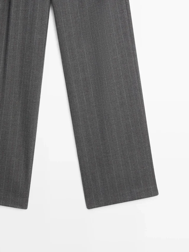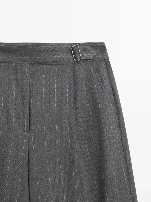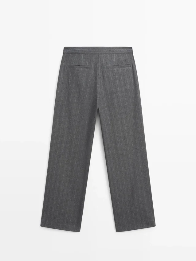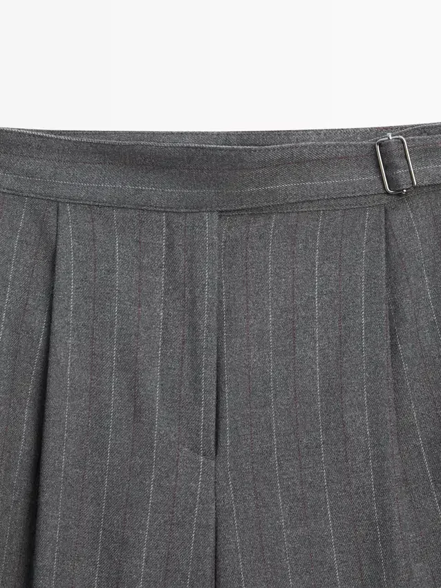 Darted Trousers. Concealed Zip Fastening, Buttoned Strap, Hook-And-Eye Fastening and Inside Button. Pinstriped.