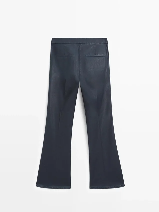 Flare Fit Trousers: This Fit Offers a Cut That Gradually Widens from the Knee to the Ankle, Visually Lengthening the Legs. Waxed Finish . Concealed Zip and Hook-And-Eye Fastening. Two Side Pockets. Two Welt Pockets on the Back. Made of Cotton Blend Fabric.