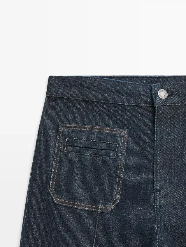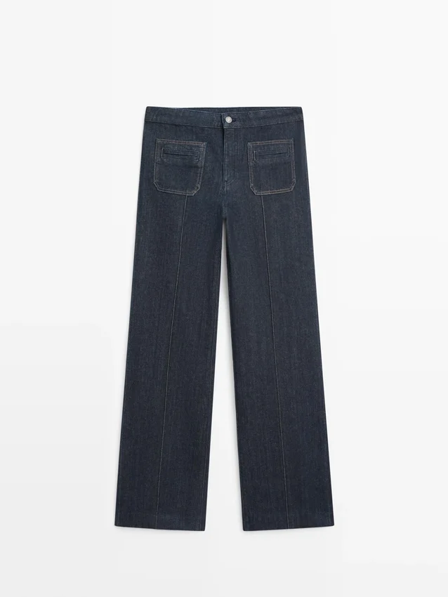 Flare Fit Trousers: This Fit Provides a Tailored Fit at the Hips and Thighs That Progressively Widens out from the Knee, Creating a Flared Effect. Front Zip and Top Button Fastening. Two Front Pockets . Two Welt Pockets on the Back. Seam Details .