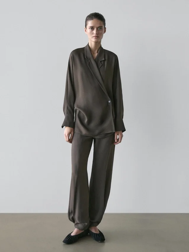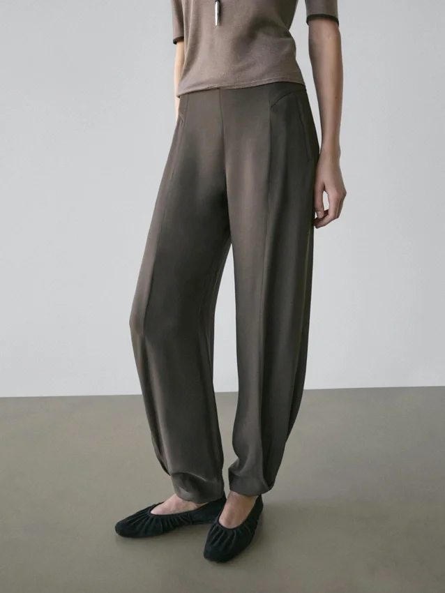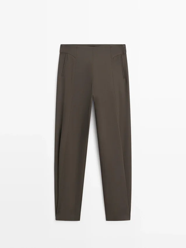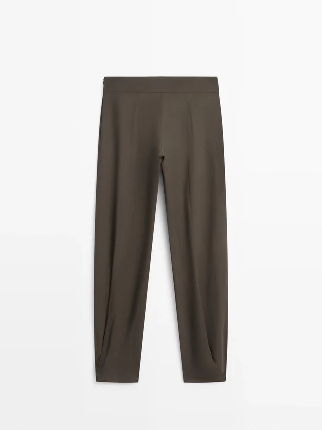 Sarouel Trousers: Loose-Fitting Silhouette, Wide Leg Volume and Ankle Fit.. Side Zip Fastening. Two Side Pockets. Darted Detail on the Front. Matching Garment Available.
