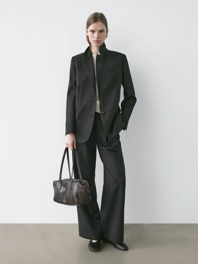 Suit Trousers Made from 100% Wool Main Fabric. Zip Fastening Concealed by a Placket, with Hook-And-Eye Clasp and Button. Two Side Pockets. One Welt Pocket at the Back. Double Dart Detail on the Front. This Garment is Part of a Suit.
