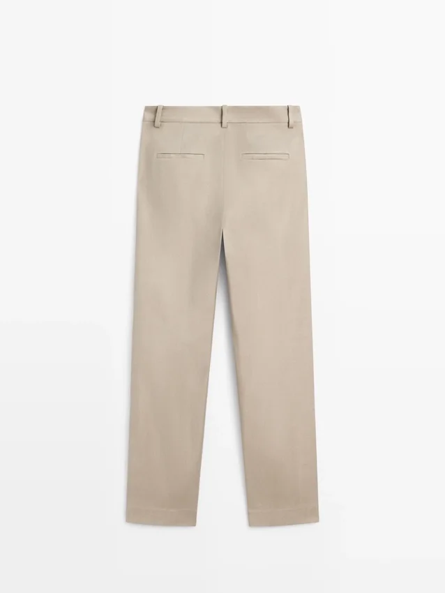 Straight-Leg Trousers: Straight Silhouette from Waist to Ankle, Without Additional Leg Adjustments. Trousers Made of a Linen Blend Fabric. Waistband with Belt Loops . Concealed Zip and Hook-And-Eye Fastening. Two Side Pockets. Two Welt Pockets on the Back.