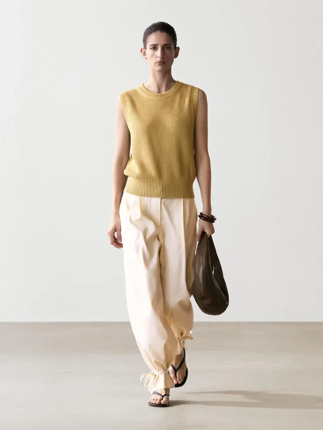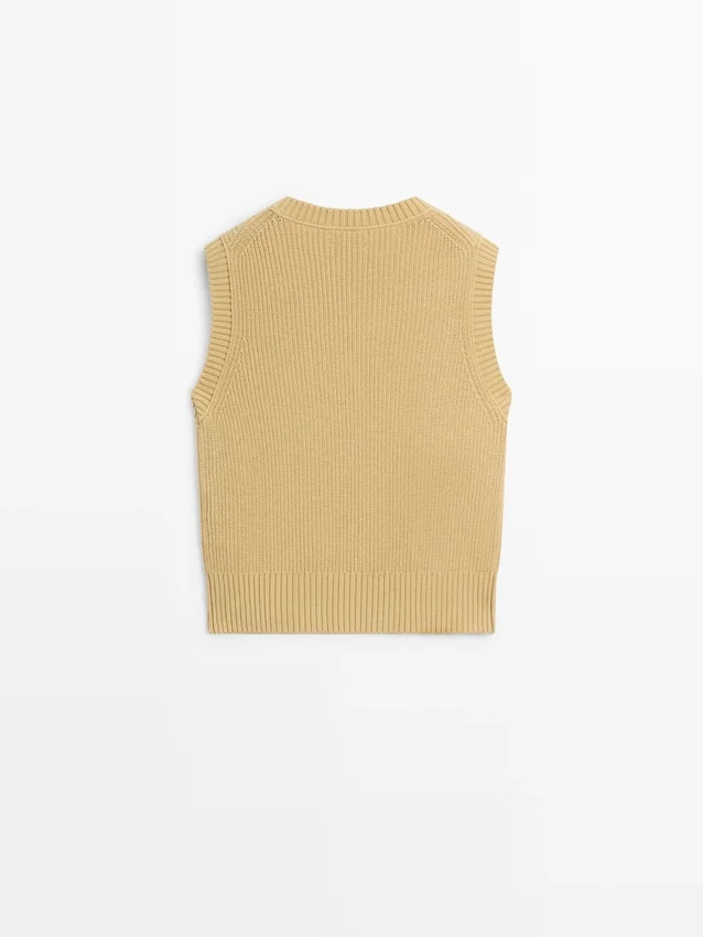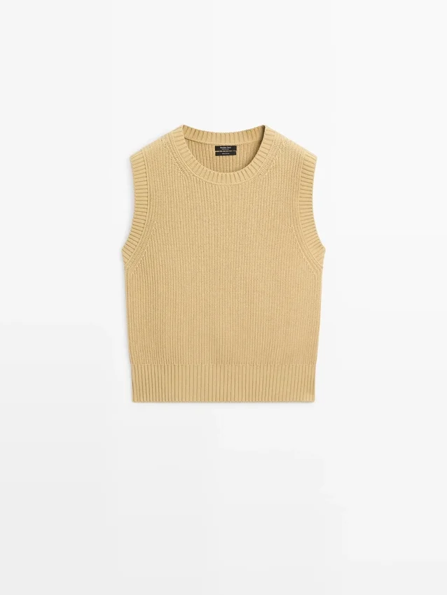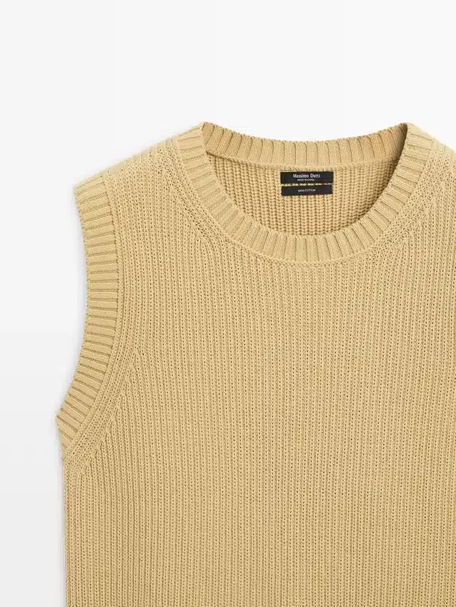 Vest Made of Knitted Fabric. Crew Neck. Sleeveless. Ribbed Trims . Ribbed Fabric.